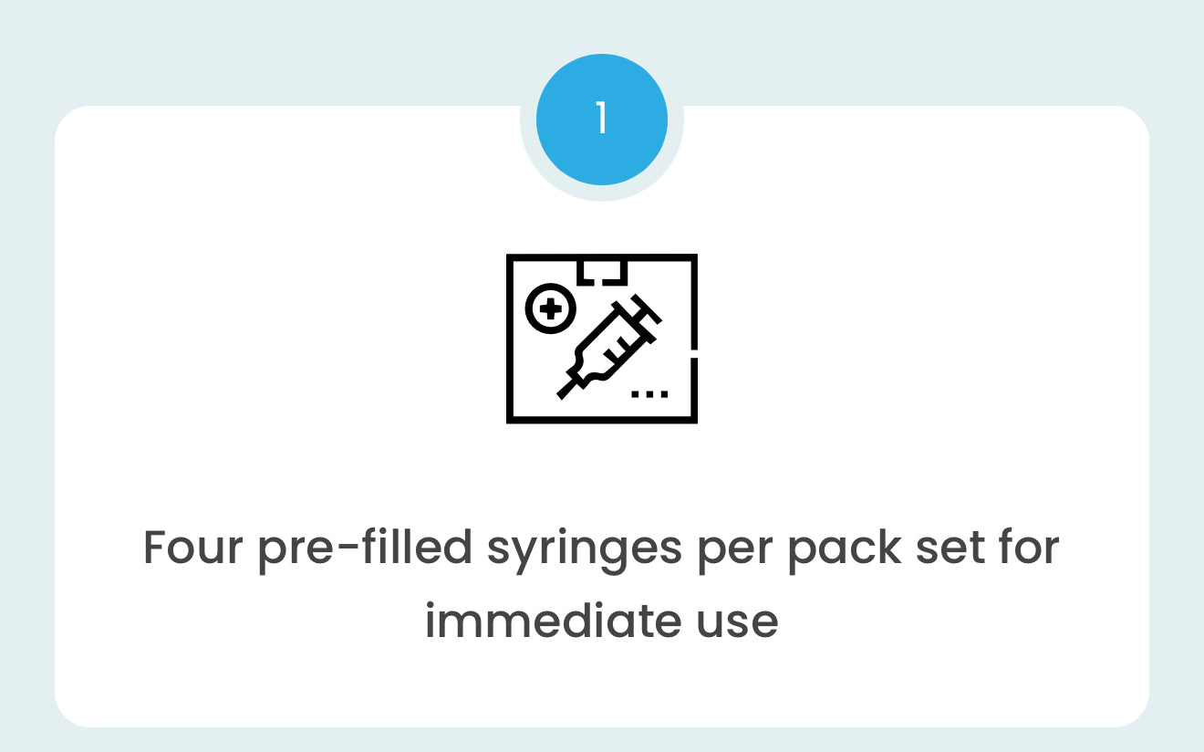 • Safe: Prefilled syringes reduce the risk of contamination and dosing errors, offering peace of mind.